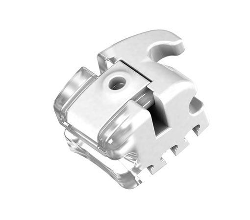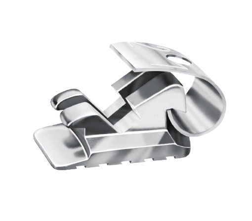 Apart from the variety of appearance there is one major advantage of metal brackets worth mentioning which applies for both conventional as well as lingual appliances. Preferably, we use so called “self-ligating” metal brackets, which use a metal clip in stead of elastic rings to secure the archwire. This makes the whole system more flexible which, in turn, results in a more gradual transfer of small portions of force from the arch wire to the teeth. Small forces are more easily translated into movement which results in a shorter treatment time and increased patient comfort.
